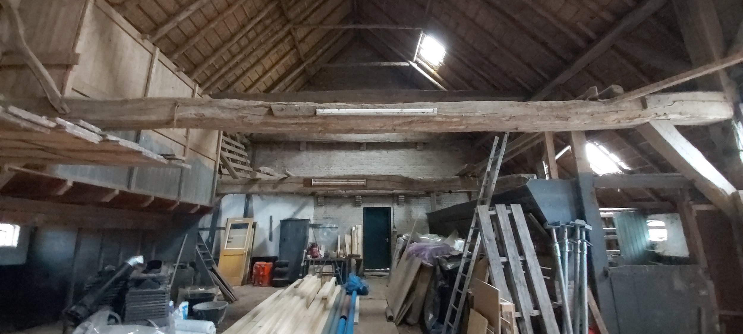 In de grote schuur is nog het voormalige knechtenverblijf aanwezig evenals een oude wateropslag met de originele kraan. Beide hebben monumentale waarde en worden weer hersteld. De voormalige wateropslag in de keuken was volgestort met puin. De muren waren opgemetseld met oude gele waaltjes en er lag een tegelvloer.
