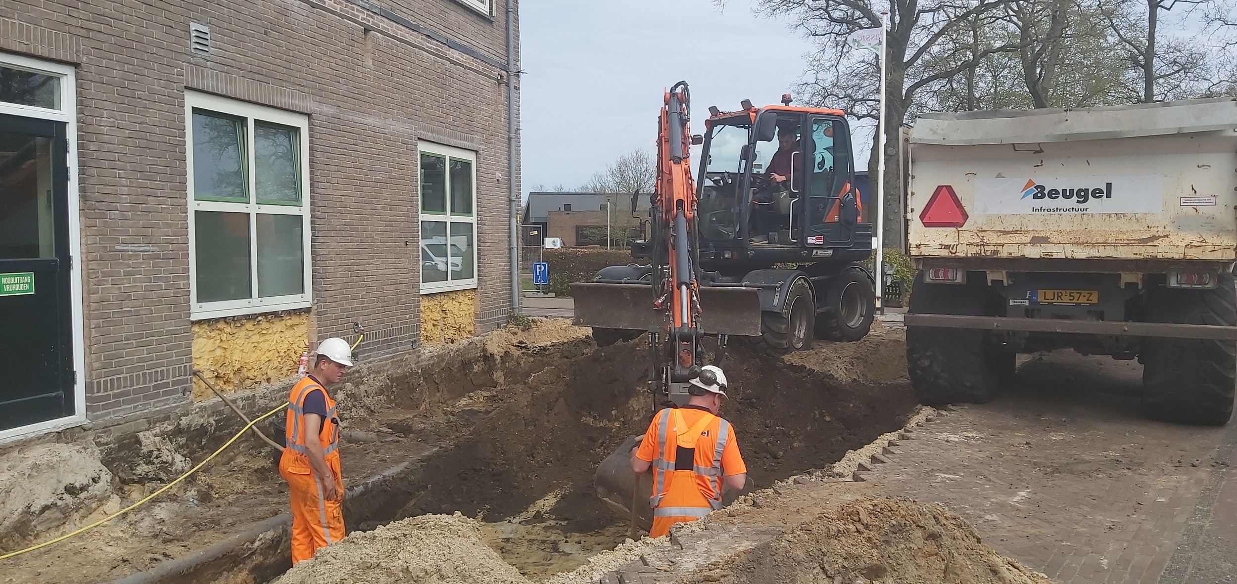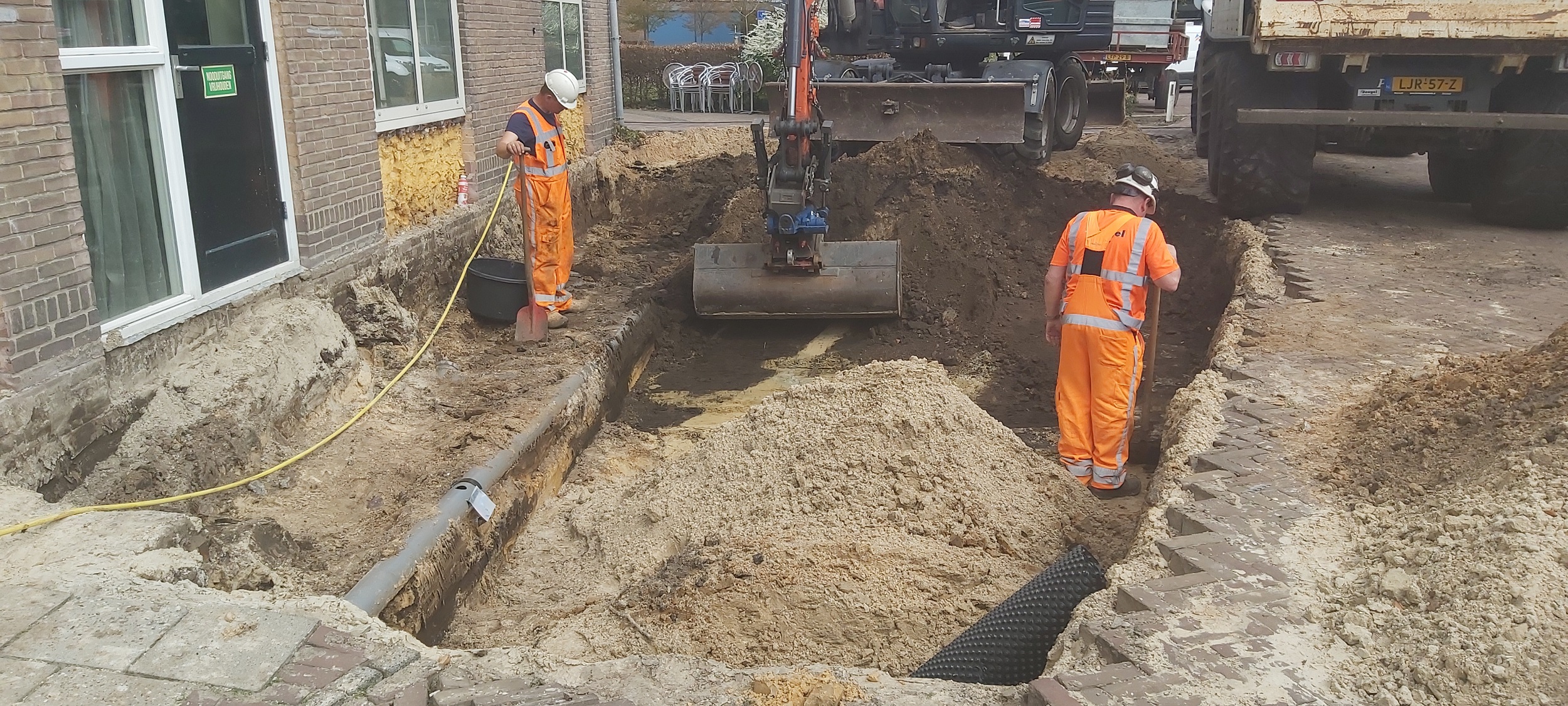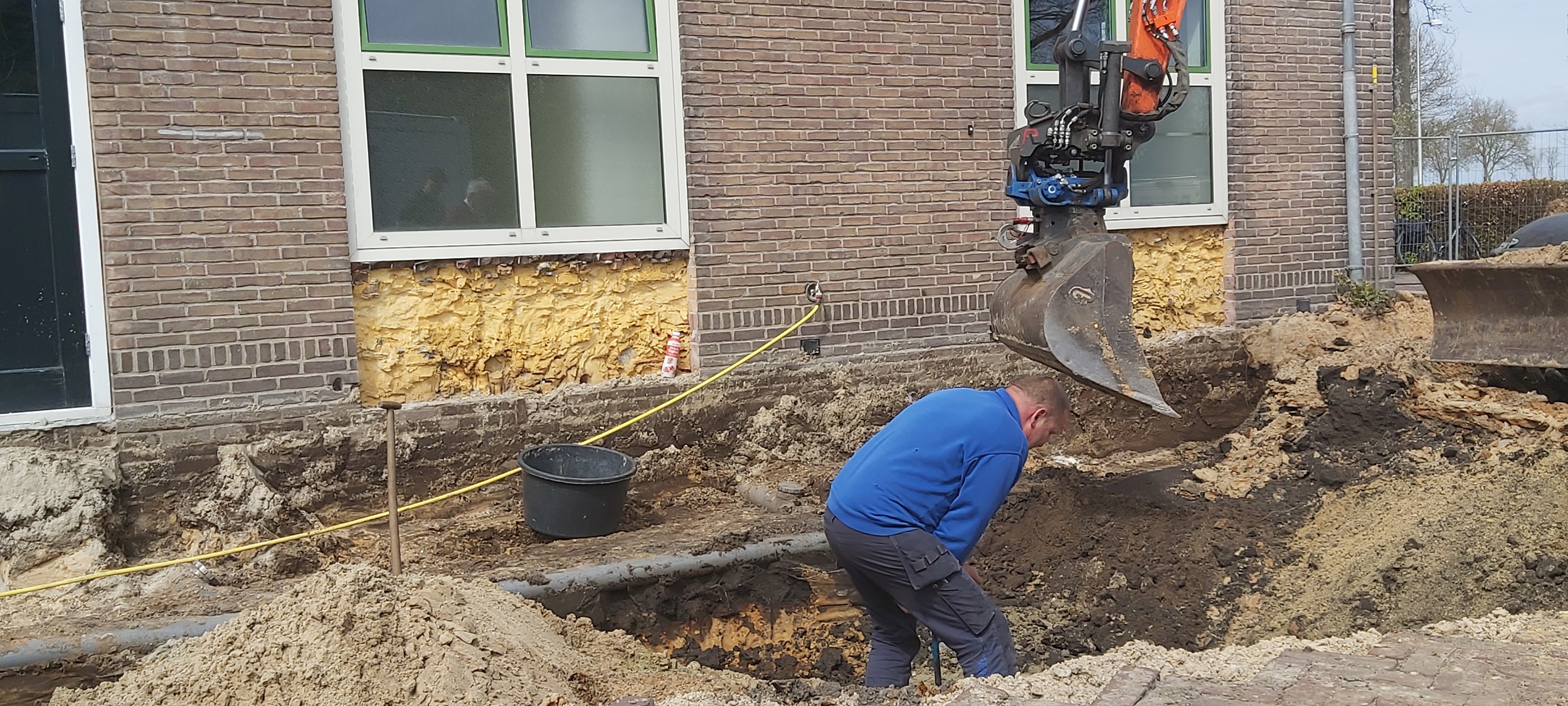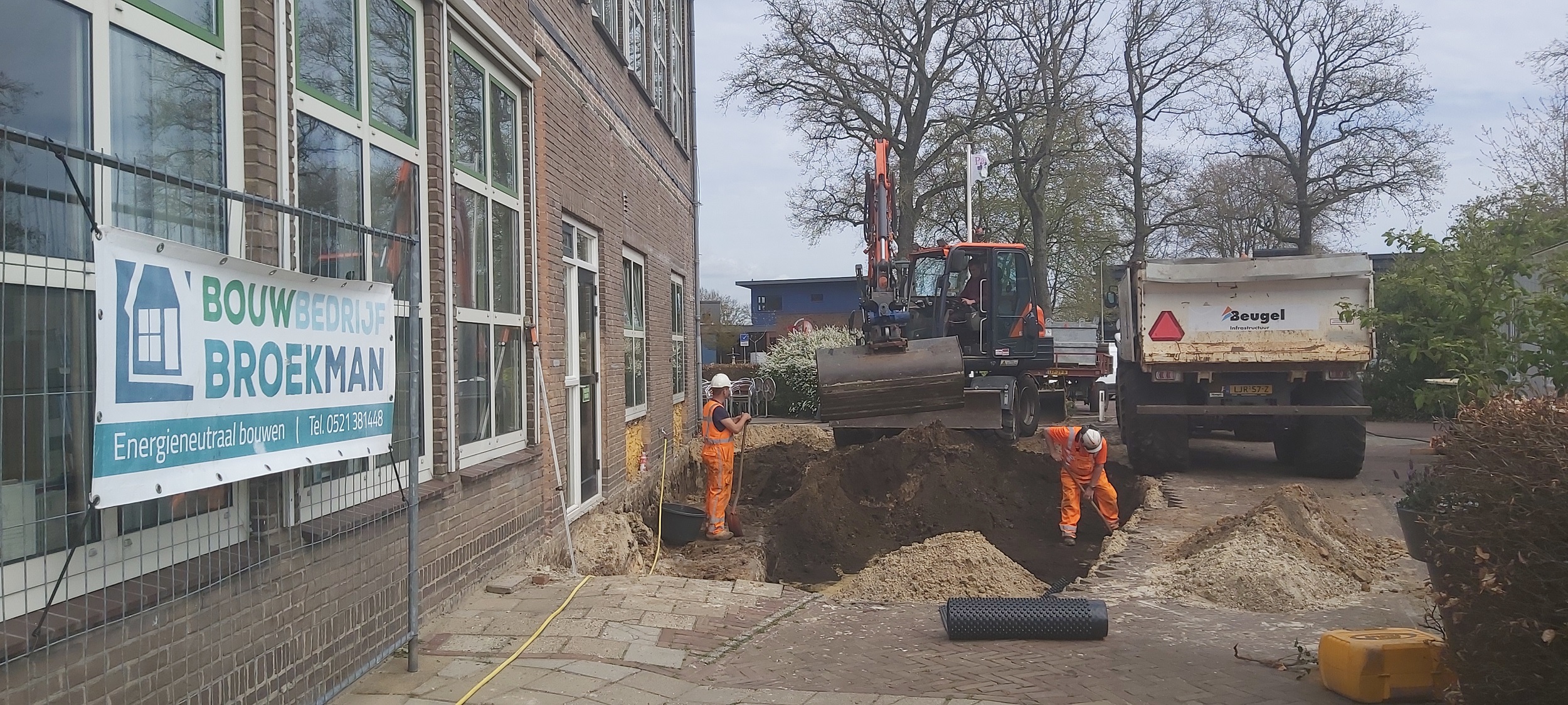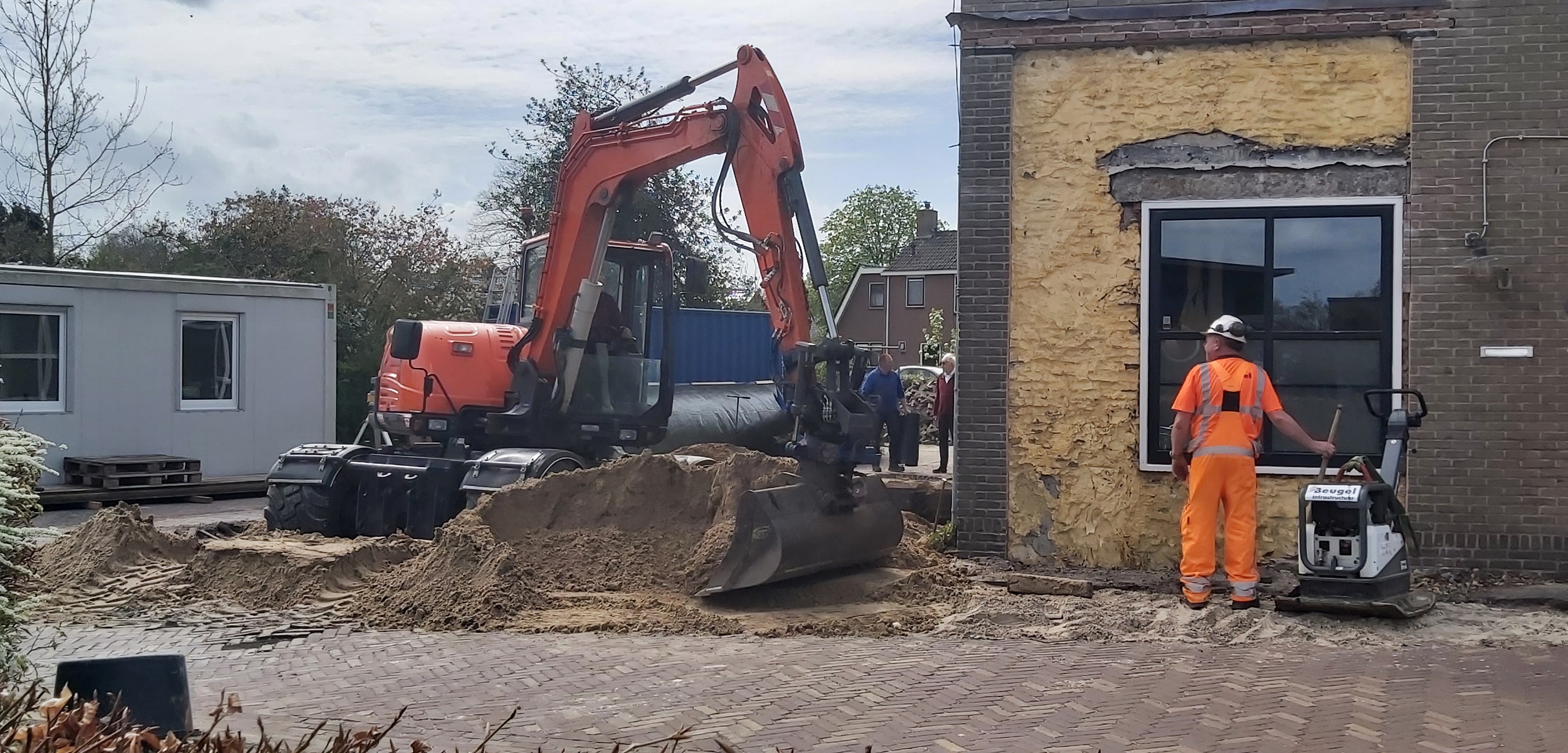 De grond wordt afgegraven en er komt grondverbetering in om op te vullen. Daarop komt dan de betonfundering op, met schuimbeton.